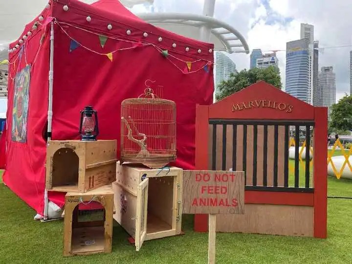 Monster Hunt is a collaborative work between Hakono and Void Deck Games, where the narrative and design is driven by VDG while the set, interactions, and fabrications were handled by us. The story was told via a set of quirky videos that were linked to QR codes. These codes are scanned after completing an assortment of fun activations in various locations scattered about esplanade. The fabulous tale came to an exciting finish where participants chose to side with either the greedy ringmaster or the altruistic mascot of esplanade.